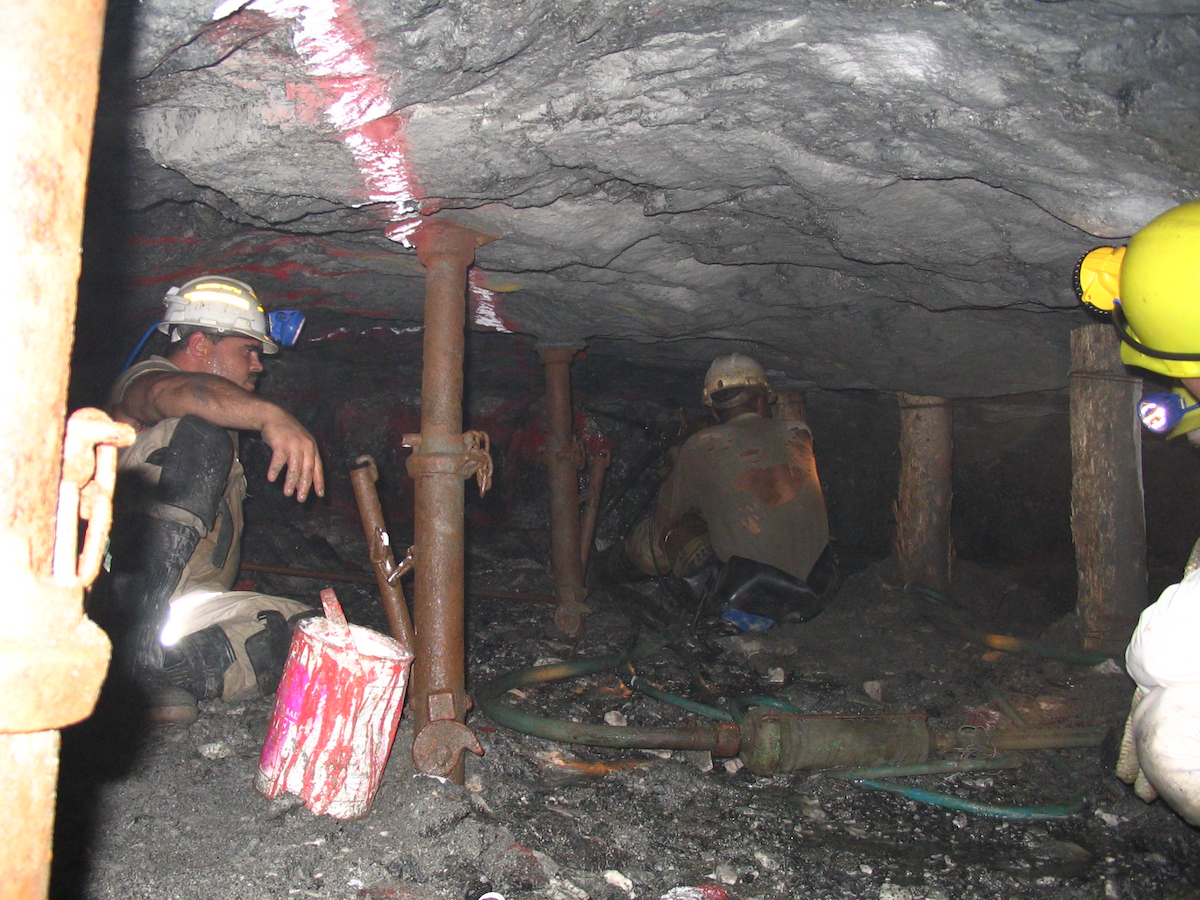 On level 23 we learned a bit about the safety measures, the daily schedule, and the tunnel structure. The day shift is manned by drillers, who use large pneumatic drills to drill a series of holes in the stope (work area). The then use compressed air to pack explosives into the holes. At 3:00 pm when the mine is cleared of first shift, the explosives are detonated. Then the next shift comes in to clear out the rock.