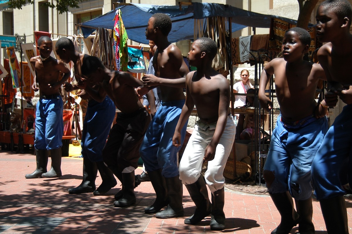 Performers of various types also frequented the street corners and open areas. This group was doing a dance similar to the one we saw while visiting the Amy Biehl foundation. Several groups of very skilled musicians could also be found around the market. Until today, I never knew that a kazoo could be played to sound like an alto saxophone.