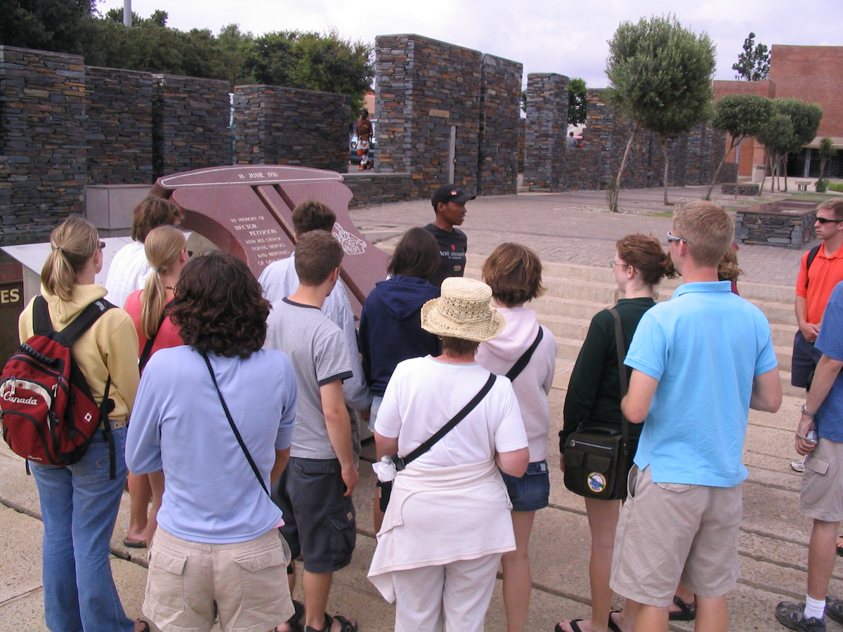 Third: the people of South Africa. Your hospitality and generosity made everything possible. Here’s a partial list: Wayne Herman, Nathan, Emmanuel, and the Cornerstone College administration; JL Zwane and Bandile and Thobile; Lionel and Sandra Davis at Robben Island; Ntobeko at the Amy Biehl Foundation; Ron Bussinne and Mani at A-Gas; Fanie DuToit at IJR; Daniel Maluleke in Mamelodi, Percy Msimang in Soweto; Rudy Rudolph at Anglo Platinum; Mama Clara, Peter, Kujo (sp?), and the others at Kgautswane Development Center; Aubrey johnston in Kgautswane; and Nico and Stefan at Emerald Guest House.