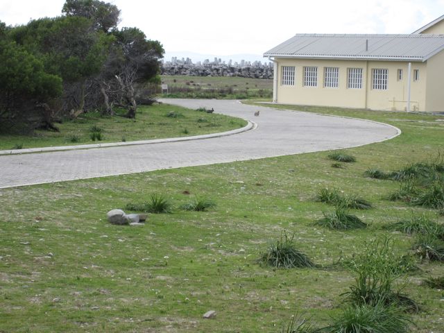 Mark counted at least 26 bunnies while on the island (Do you see two of them by and on the path?). They are plentiful for a few reasons: First, they're bunnies. Second, their population was originally smaller because they were fed to the prisoners. After 1991, their meat was no longer needed, but they kept multiplying, as bunnies do. They have devoured much of the vegetation of the island. Our guide told us that as we left the island, we could take a male and female and present them to someone we disliked.