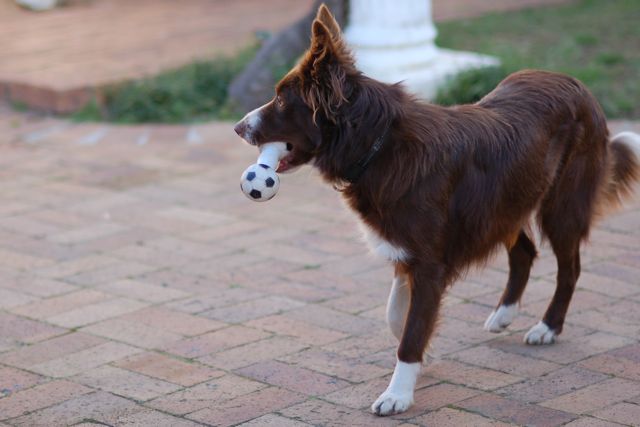 Tracy bought Tosca this new "bone," which she loves.