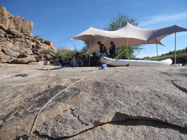 The guides always jiggered a way to keep the bedouin secure. At Scorpion, one corner was tied to a rock.