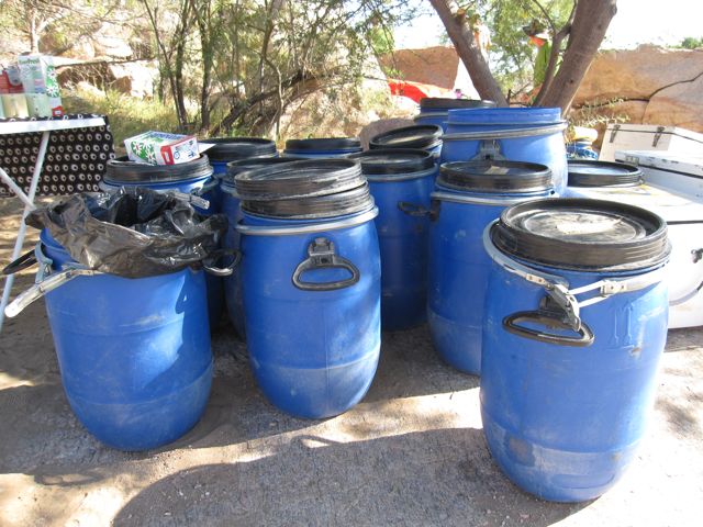 At each campsite, we hauled the blue barrels from our boat to the kitchen area. The barrels were all labeled with funny names. For example, "Eating Weapons" contained knives and forks, "Coffee Shack" contained coffee and tea supplies, and "Thunder" contained ... well, maybe I'll explain that later.