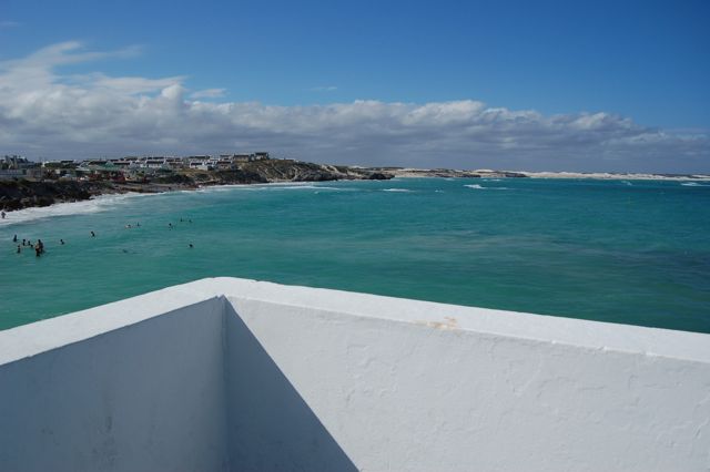 I'm standing atop the public restrooms and looking toward the fishing village. The ocean really is this green.