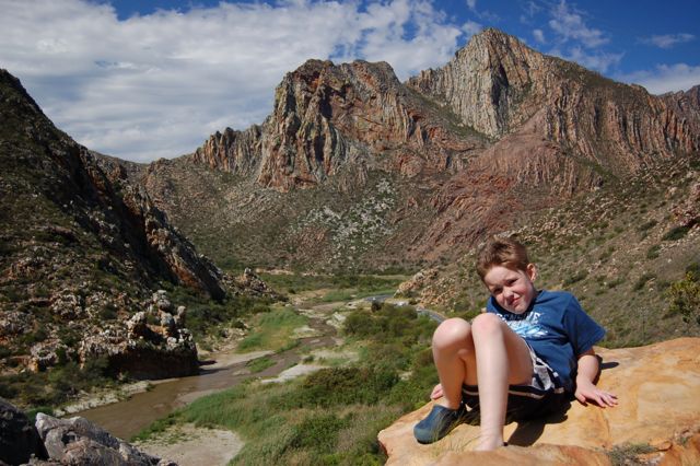 It looks dangerous, but it wasn't. The path down to the road is just below Mark.