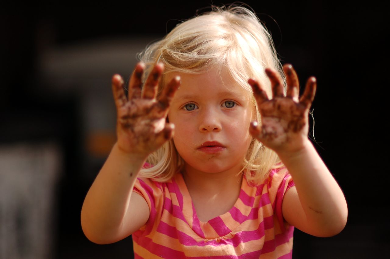 * Imperfections: This was a very candid shot. She was playing in the dirt with some water, and I asked her to show me her hands. I released the shutter at just the right instant. But, her face has a bit of mud on it, and her forearms are dirty, too. I think that lends a bit of realism to the photo which makes it fun, even if her expression is serious.
