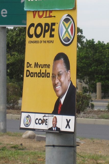 COPE's presidential candidate is Mvume Dandala, a Methodist minister. He was a surprise candidate after two of the primary founders of COPE (Terror Lekota and Sam Shilowa) failed to compromise.