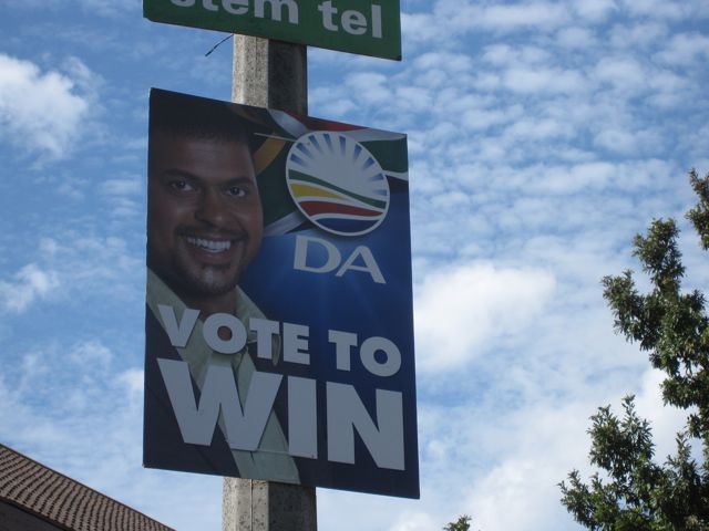 The Democratic Alliance is particularly strong in the Western Cape area. They are a home for "opposition" voices. They have a shot at winning the Western Cape province, but they will not win the presidential election. If they do well but no party gets an outright majority in the Western Cape, then a provincial coalition government will be necessary. Unfortunately, the candidates for premier are not friendly toward each other, and it is hard to see effective coalition government.
