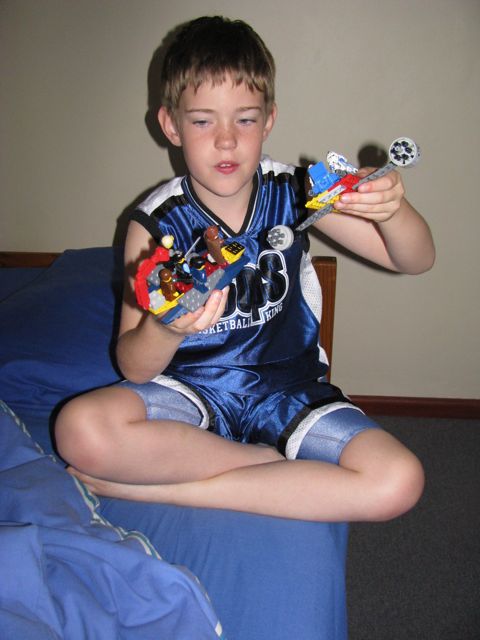 Mark did some homework this morning before our departure. After he was done, he played with his Legos in his room. I took Catherine to daycare and Jim to drop their rented car. After that, we were off.