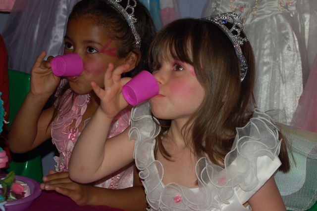 Tea (well juice and sweet snacks) was served. Khellie and Julia were practicing their pinky-out technique.