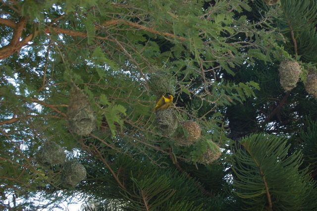 The thorn tree was full of noisy Speke's Weavers, busy with the task of constructing nests.