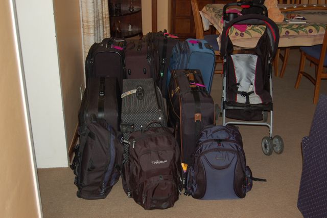 Here is all our stuff. Well, almost all of it. There are only two of my bags in here, and I think I'll need to travel with three. And, I don't have my carry-on in the photo.