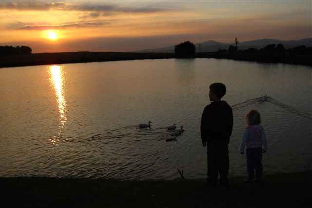 Mark and Catherine enjoyed exploring the dam, watching at the ducks, admiring the sunset, and searching for the cats on the property.
