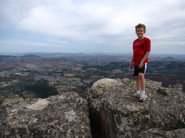Here is Mark at the top of the world! The ocean is beyond him over his left shoulder. It was windy and cold at the top on this rather warm autumn day.