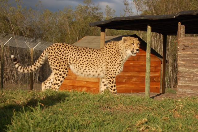 Cheetahs are the tamest of all the large cats. A little later, we went into an enclosure with two adult males. The cats scampered around us as Jacob and Dan talked about their behaviors.