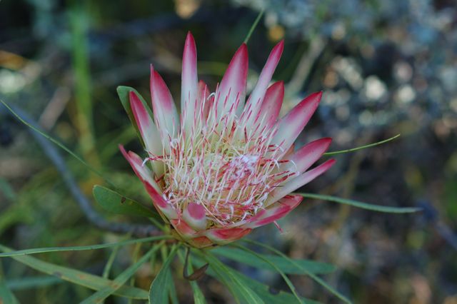 There were a couple Protea bushes that were blooming on the path. Mark spotted this one, and the photo turned out quite nice.