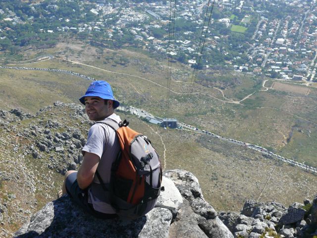 This is Riaan's lunch perch. The cables for the cableway are visible, along with the first part of our path.