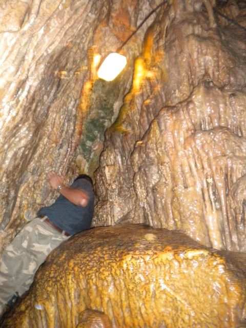 Another adult squeezes his way through.