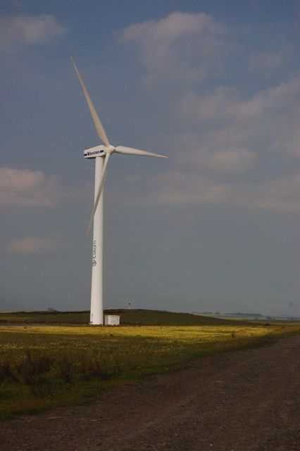 This is Eskom's V47 turbine. It has a 47 m rotor diameter and a 660 kW rating. This was the only turbine rotating at the time of our visit. Maintenance issues have plagued the site since its opening. It takes up to 6 months for needed spare parts to arrive from Europe. And, Eskom doesn't want to keep spares on hand, due to the cost. So, the machines often sit idle.