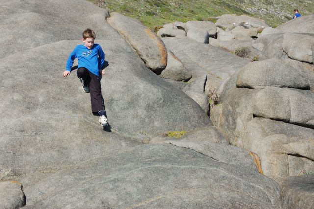 The rocks along the shore are mostly smooth due to weathering from centuries of pounding by fierce Atlantic storms. Mark was sliding carefully down the rocks when I snapped this photo.