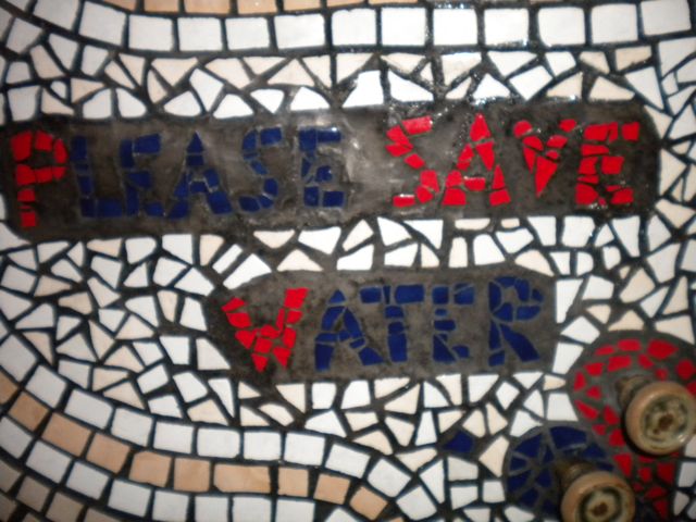 In the shower, near the water taps, was this sign etched into the side. Moonshine saves rainwwater and asks you to use the water sparingly.