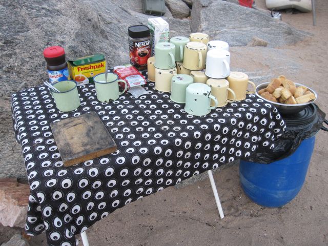 The contents of the Coffee Shack bucket were put to good use at each meal. This was the setup for breakfast at the Trees campsite.