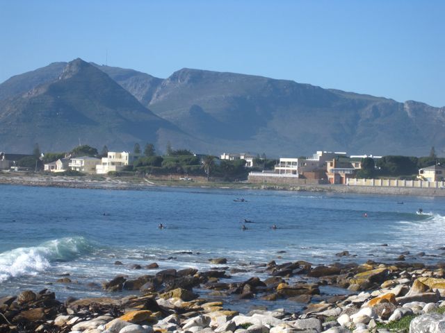 Kommetjie is a popular surfing location. These surfers are working their way out to the better waves.