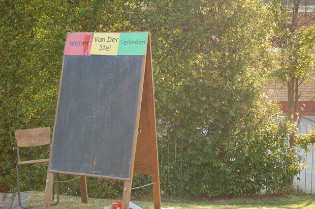 The three "houses" compete against one another at the Swimming Gala. Running scores were kept on this board.