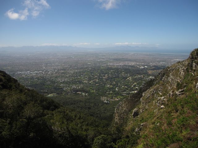 This is the view toward False Bay over the Cape Flats from about three-quarters of the way up Skeleton Gorge.