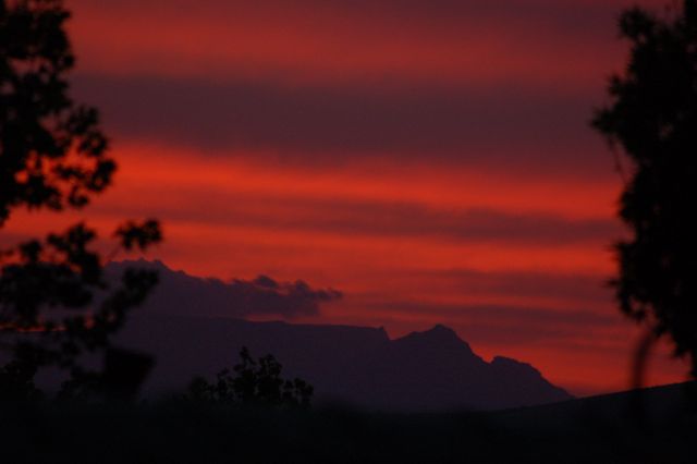By sunset, the clouds had dissipated somewhat, but they were still present.