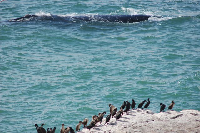 After our ride, we walked over to the rocky shore of Walker Bay to take a look. It was amazing. This photo shows just how close it was. We could see the callosities on its head.