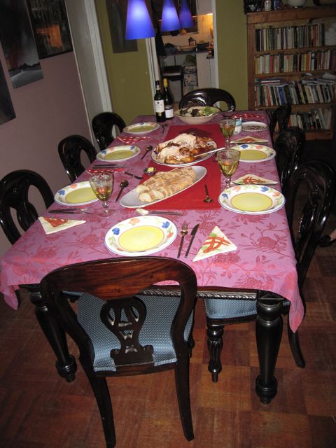 Then, in the evening, we went over to Amanda and Louis' house for a braai. We had a great time, laughing late into the night. I snapped this photo of the table. Louis made two whole chickens in his new Weber grill. The results were lekker.