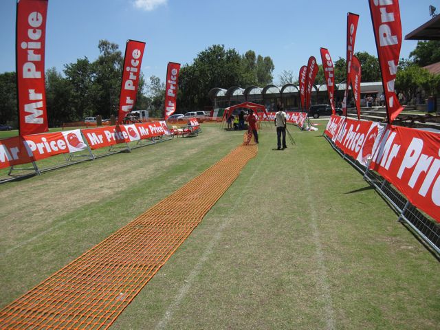 After the race was done, I took this photo of the finish chute. Our boerewors stand was beneath the left end of the repeated hemispherical roofs in the background.