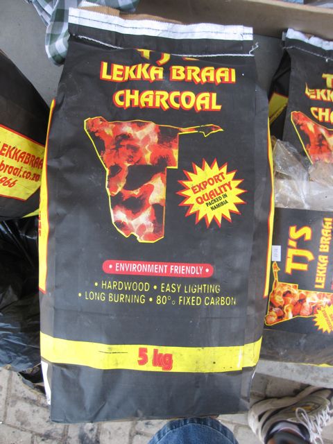 Louis had about 10 bags of TJ's Lekka Braai Charcoal: the fuel for the braai.
