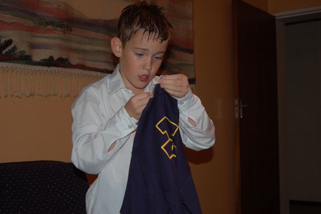 Grandma and Grandpa brought a University of Michigan shirt for Mark.